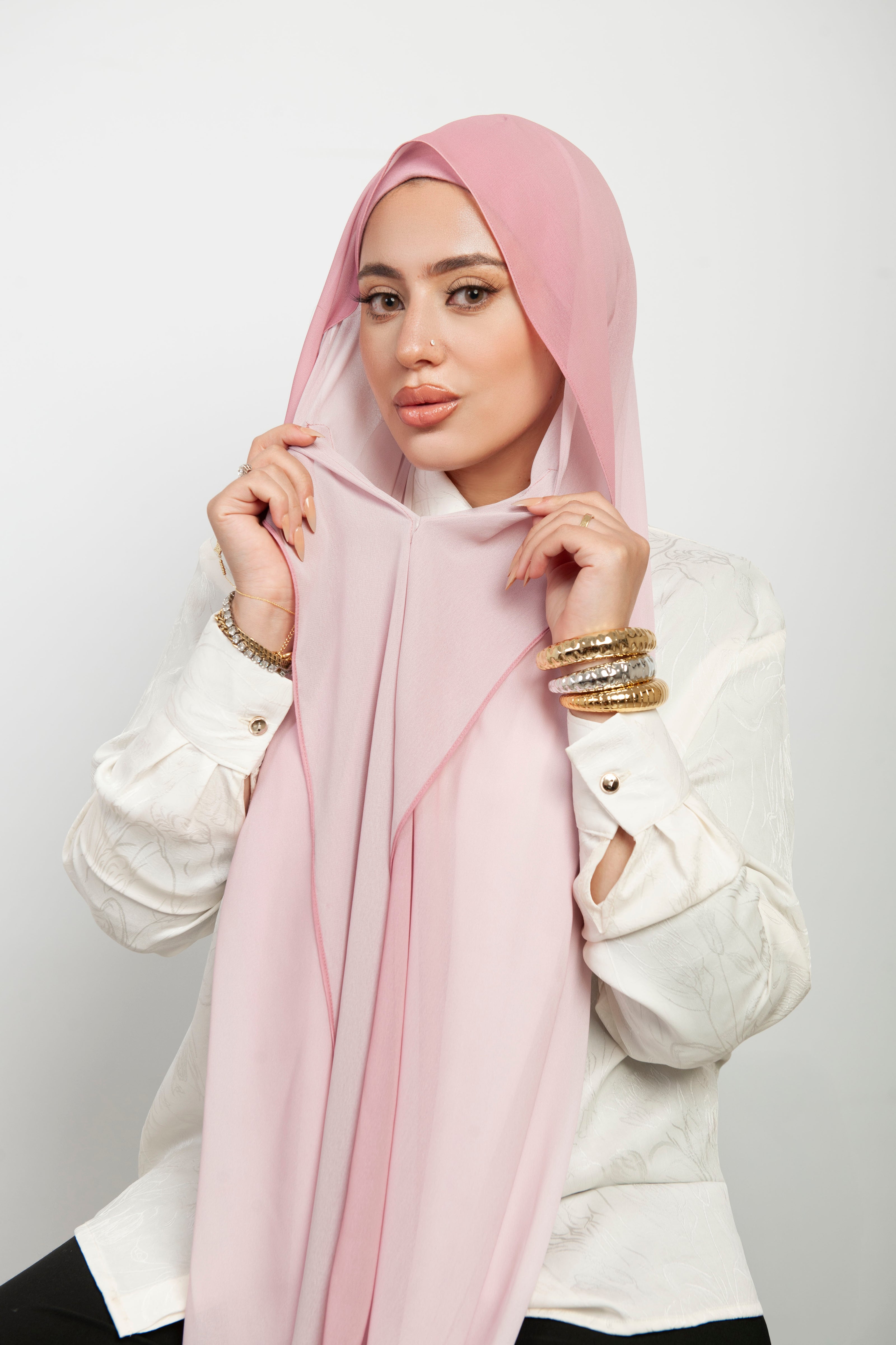 الحجاب الشيفون المغناطيسي 3 في 1 – لون وردي ناعم