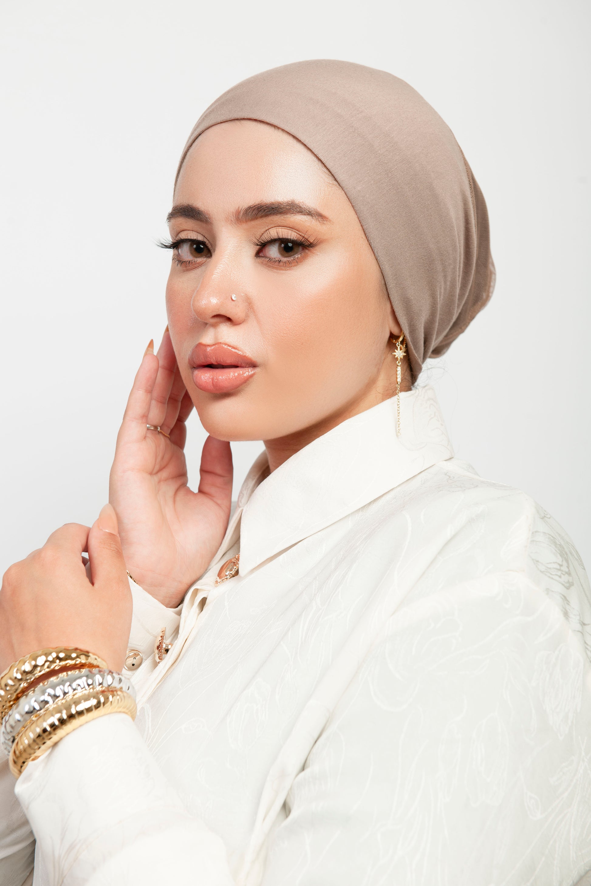 •سهولة الارتداء: خفيفة الوزن، مريحة في ارتدائها وخلعها، وتناسب تمامًا تحت أي طراز حجاب.