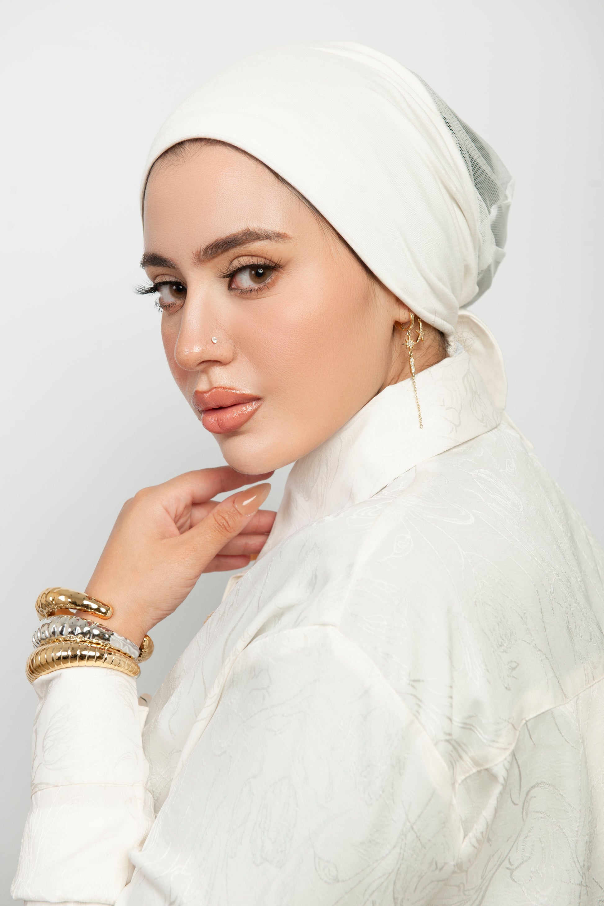 •سهولة الارتداء: خفيفة الوزن، مريحة في ارتدائها وخلعها، وتناسب تمامًا تحت أي طراز حجاب.