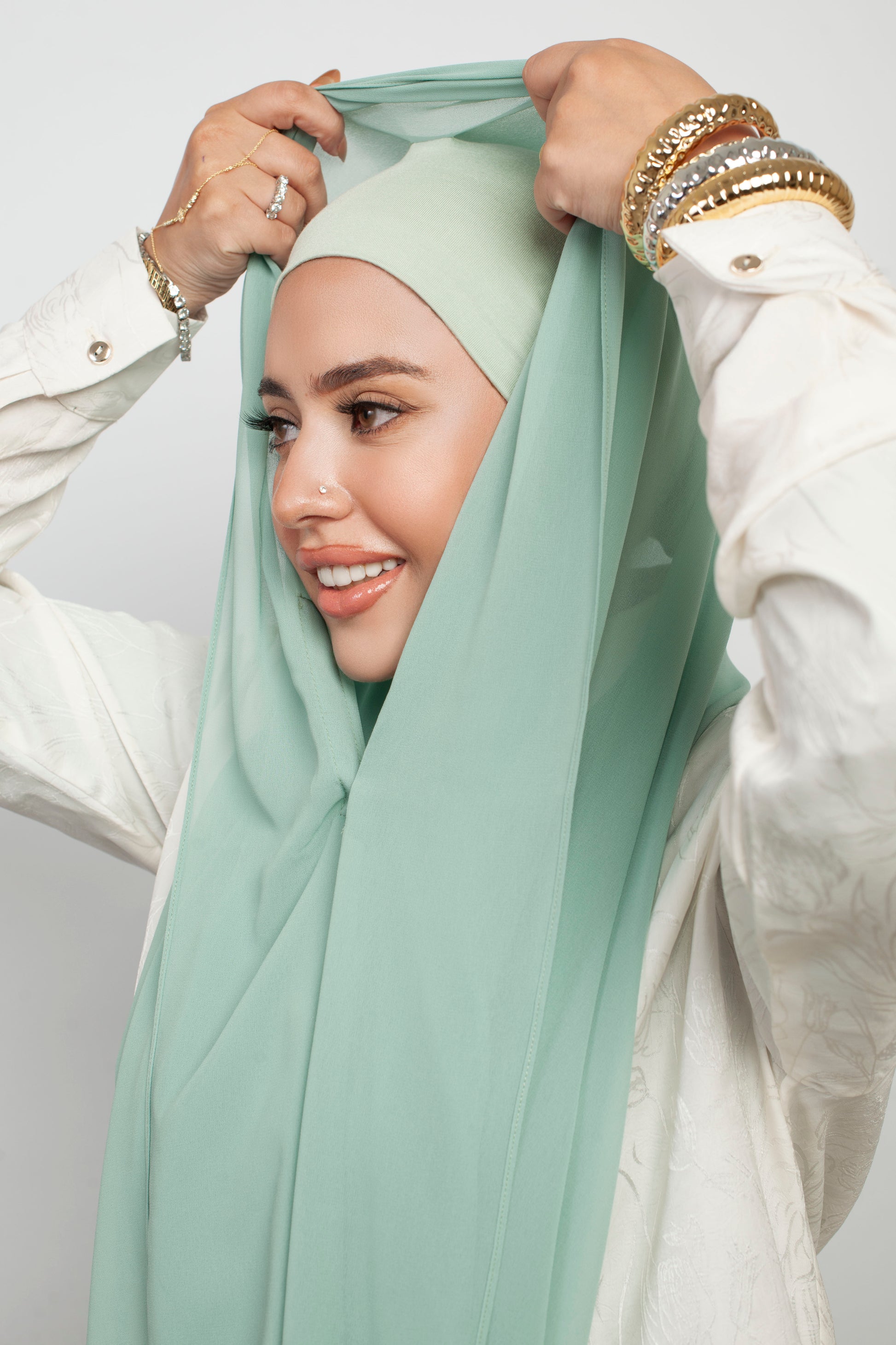 الحجاب الشيفون المغناطيسي 3 في 1 – لون الاخضر النعناعي
