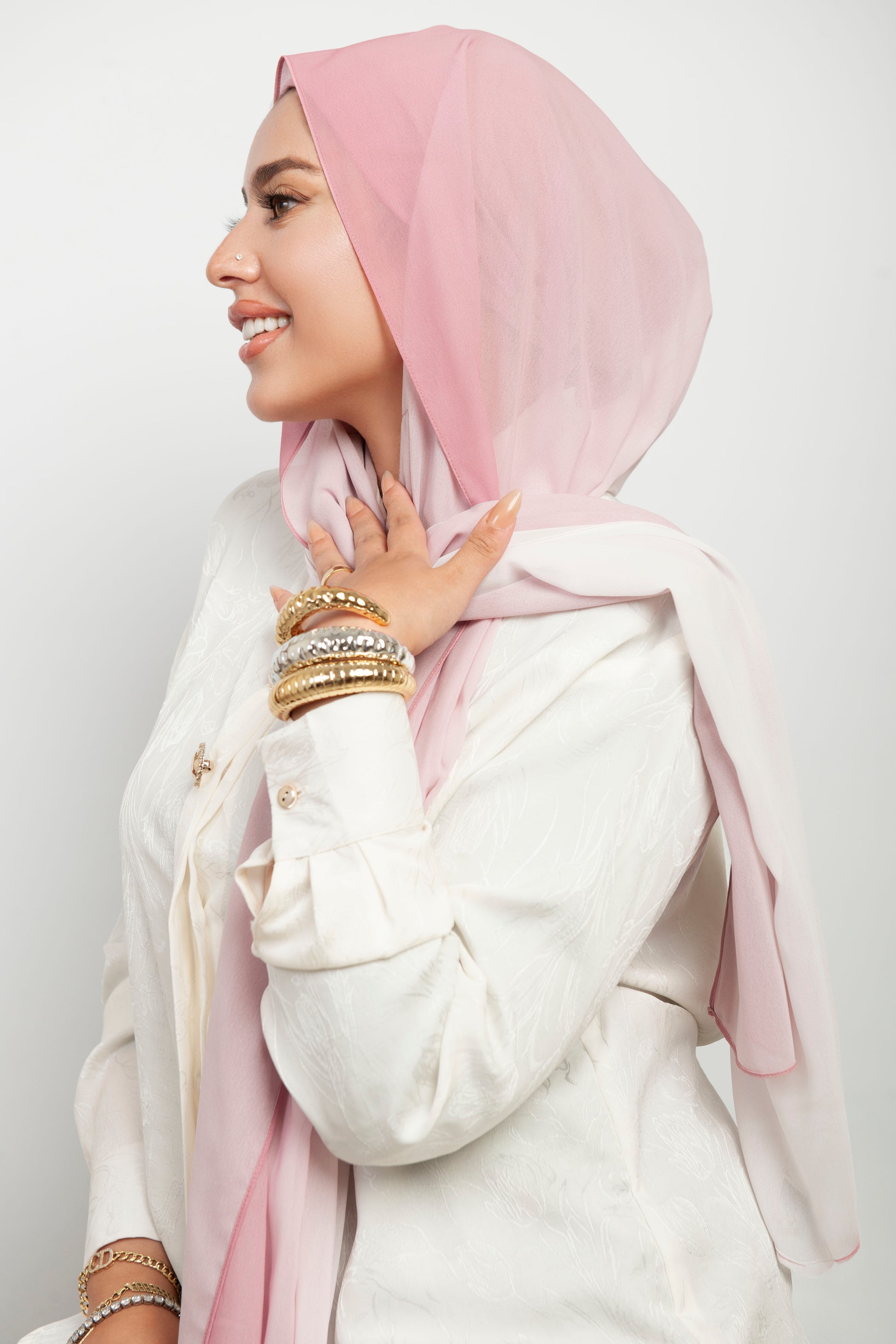 الحجاب الشيفون المغناطيسي 3 في 1 – لون وردي ناعم