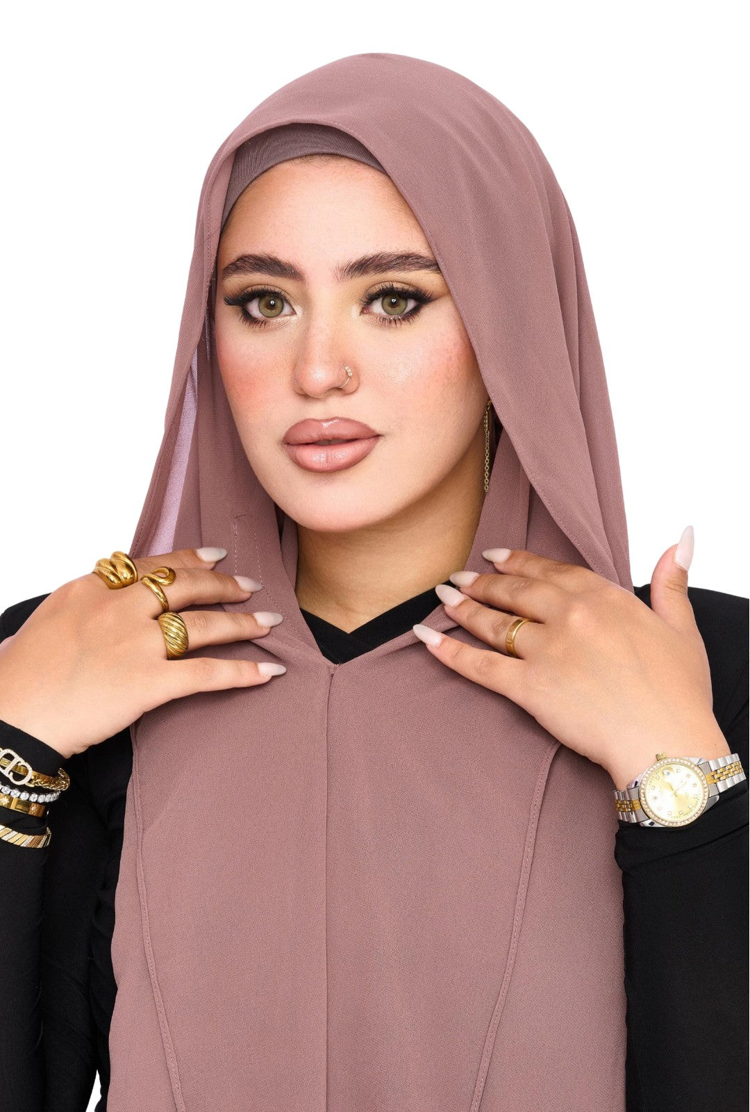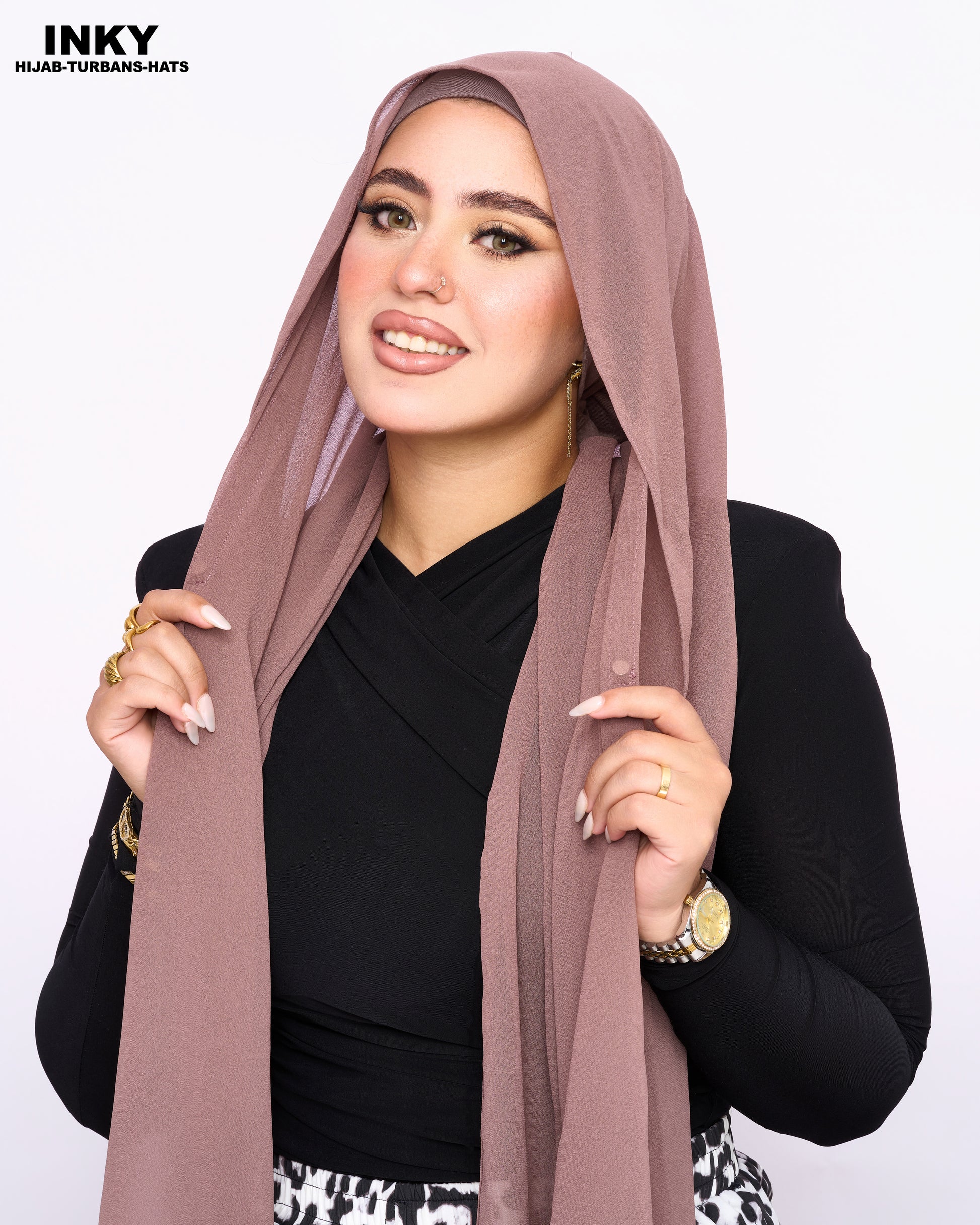 الحجاب الشيفون المغناطيسي 3 في 1 – لون بني رمادي(طوبي)