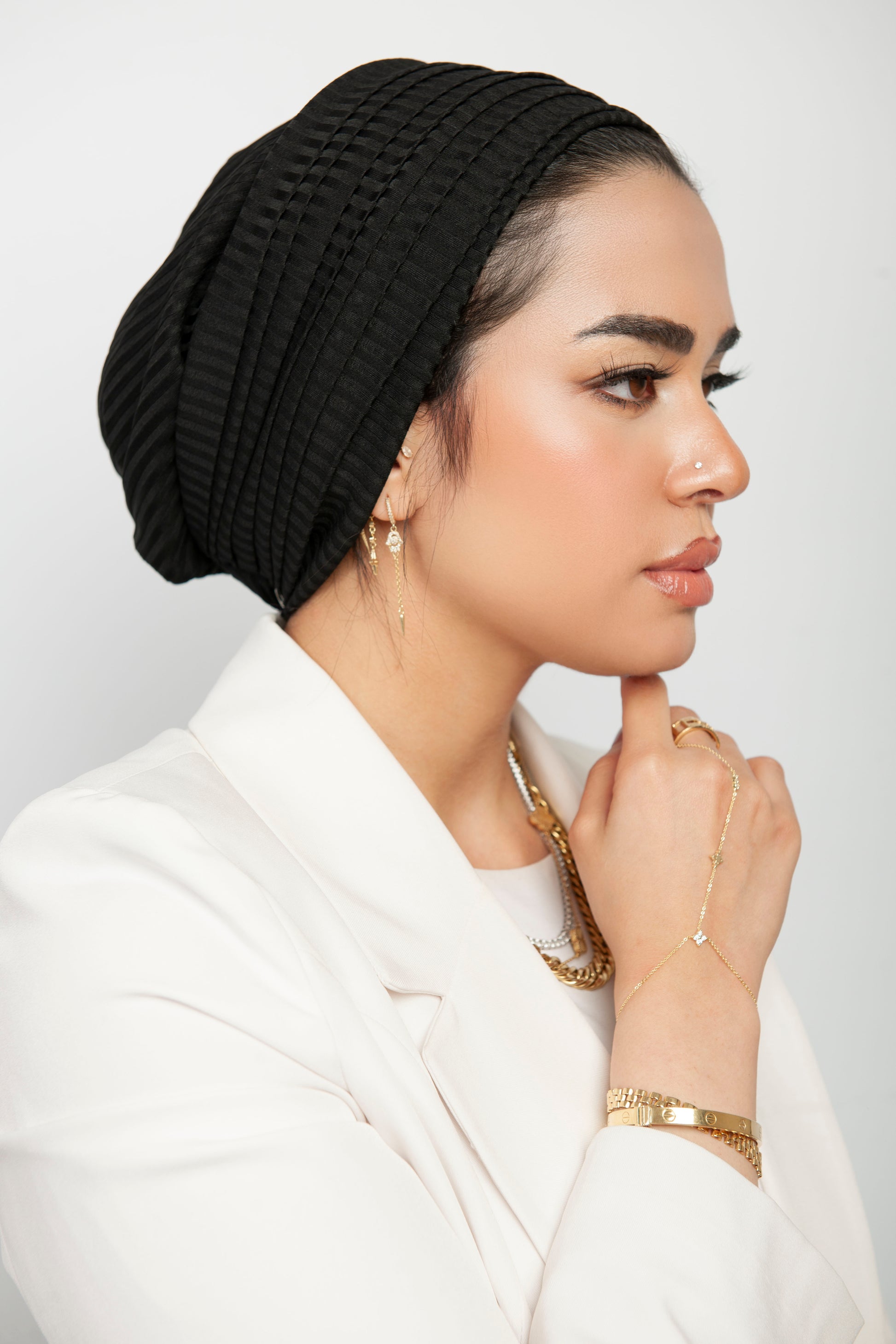ارتقي بأسلوبك مع تربون الأنيق المكون من قطعتين والقابلة للتعديل، المصممة للنساء اللواتي يرغبن في الجمع بين الموضة والراحة في أغطية الرأس. يتميز هذا الطقم الفريد بتصميم قطعتين مع بكبسولة خلفية قابل للتعديل لتخصيص قياس تربون بسهولة، مما يضمن ثباتها وملاءمتها تمامًا لمقاسك.