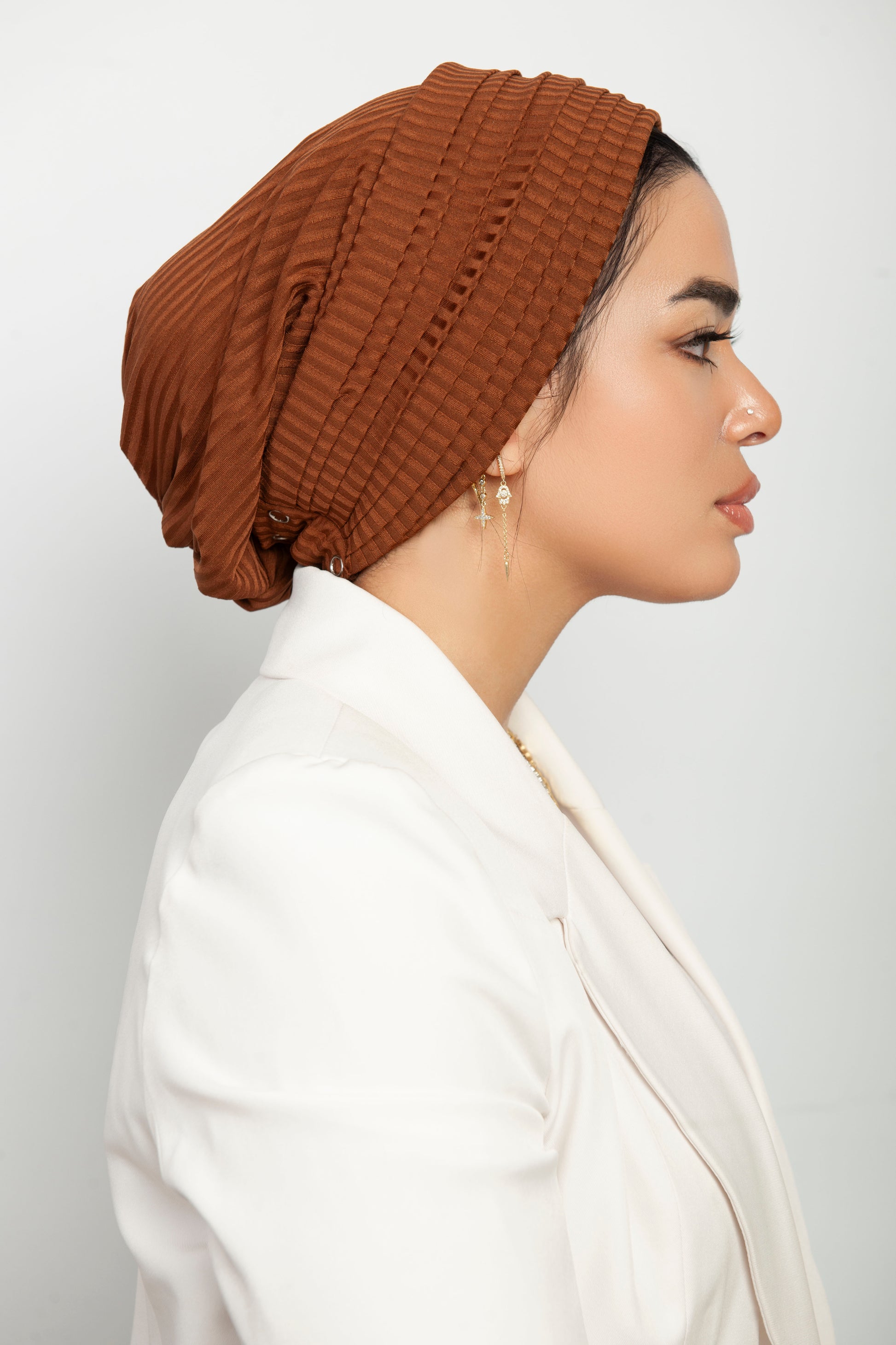 ارتقي بأسلوبك مع تربون الأنيق المكون من قطعتين والقابلة للتعديل، المصممة للنساء اللواتي يرغبن في الجمع بين الموضة والراحة في أغطية الرأس. يتميز هذا الطقم الفريد بتصميم قطعتين مع بكبسولة خلفية قابل للتعديل لتخصيص قياس تربون بسهولة، مما يضمن ثباتها وملاءمتها تمامًا لمقاسك.